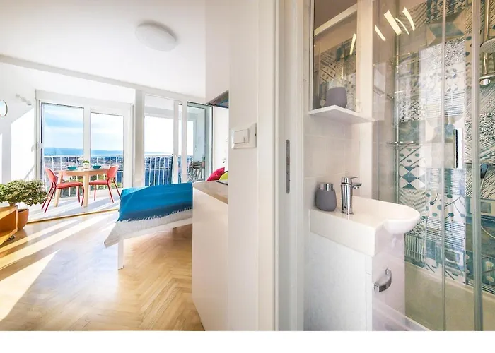 海の景色を見渡す海辺のベッドル-ム1室のSummer Blue Bikes4Free Reduced スプリトアパ-トは,スプリトのスプリト科学博物館&動物園から歩いて25分です. ビジネスとレジャ-の両方の目的でWi-Fiを利用できます.